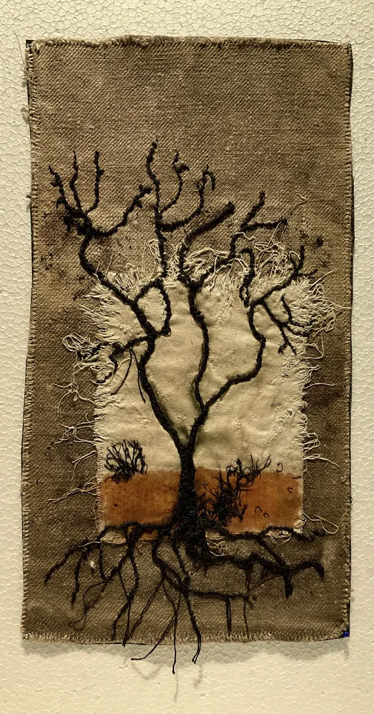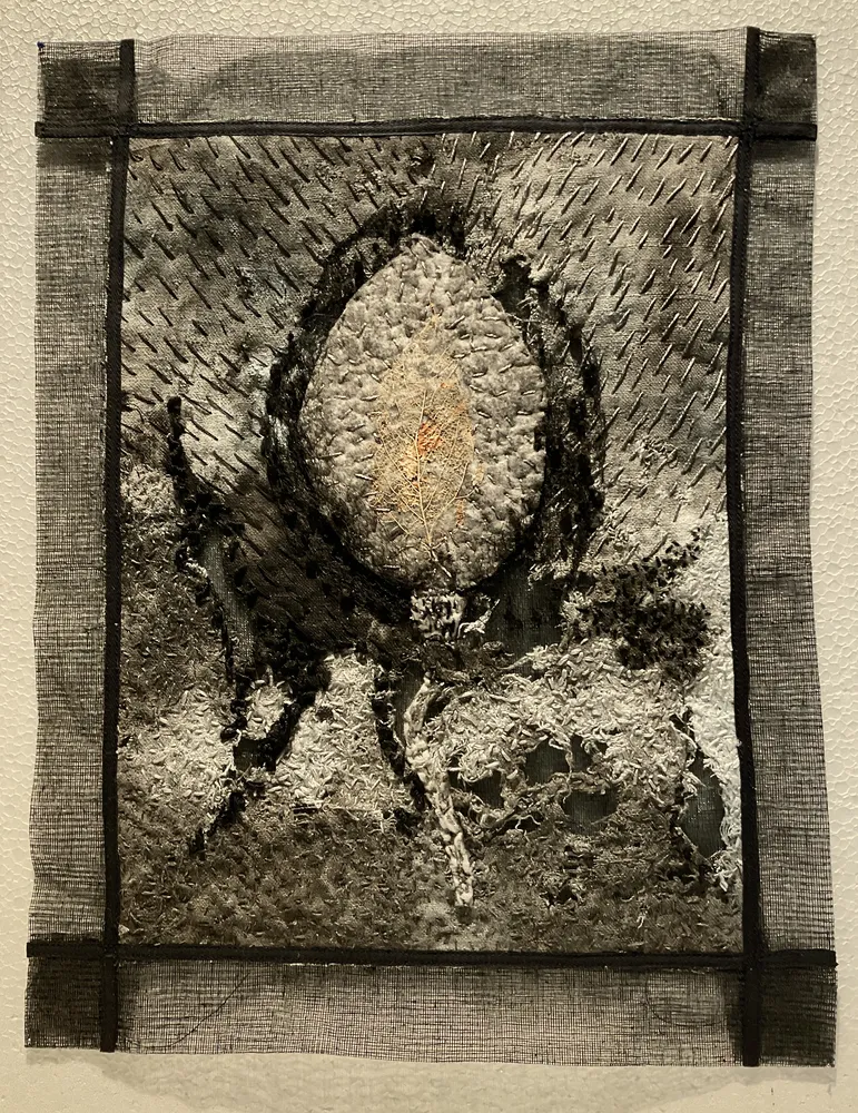 Ses créations prennent la forme d’œuvres d’art textile mêlant tissu, papier, matériaux recyclés, feuilles séchées, fibres naturelles et compositions en trois dimensions. Son travail s’inscrit dans une narration picturale intuitive, guidée par une question récurrente : « Et si j’essayais ? »