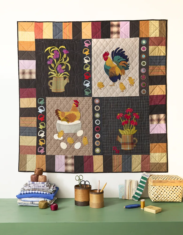 Son inspiration puise directement dans la nature et dans les scènes du quotidien rural. Elle y ajoute une touche enfantine, sensible et joyeuse, qui caractérise son univers. Entre tradition et spontanéité, Dominique Rodrigues développe un langage textile chaleureux, où la narration et la couleur occupent une place centrale.