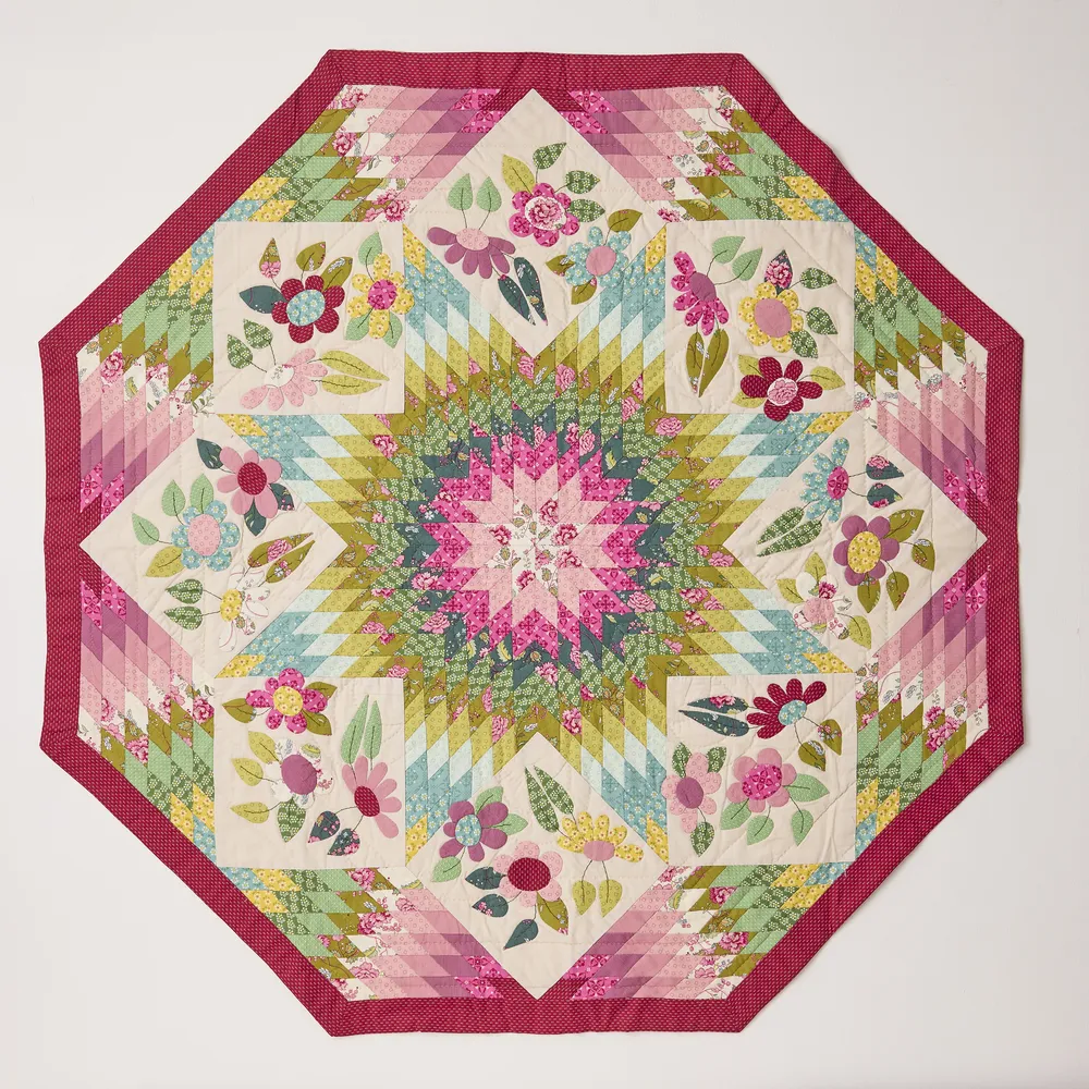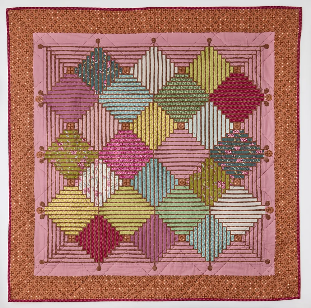Depuis 1991, Kristel Salgarollo enseigne et pratique le patchwork en Belgique et à l’étranger. Collaboratrice de longue date des Éditions de Saxe, notamment pour Magic Patch et Quilt Country, elle a développé au fil des ans un univers artistique riche et distinctif. Elle a constitué une impressionnante collection de quilts entièrement conçus par ses soins, avec un penchant particulier pour les grands quilts composés de petits morceaux, les mini-quilts et les coussins. Son style, à la fois traditionnel, moderne et dynamique, se distingue par un matelassage à la main méticuleux, révélant sa patience, sa précision et sa passion profonde pour les détails. Les visiteurs de Carrefour se souviendront peut-être de son exposition de mini-quilts à la Villa Burrus en 2022, qui a ravi le public.