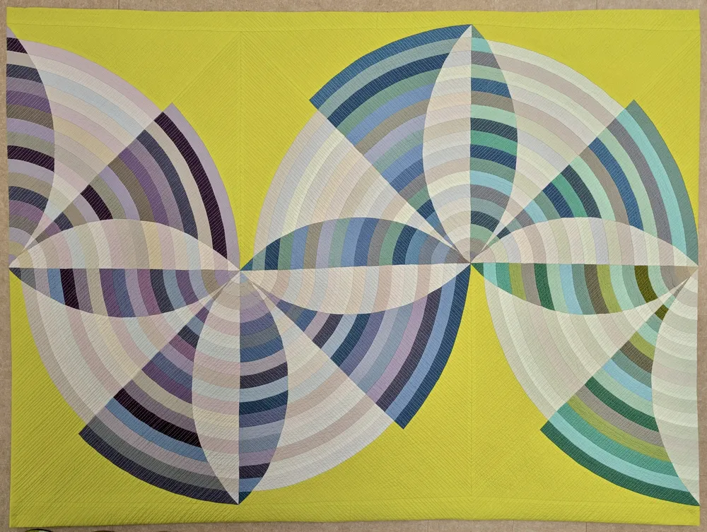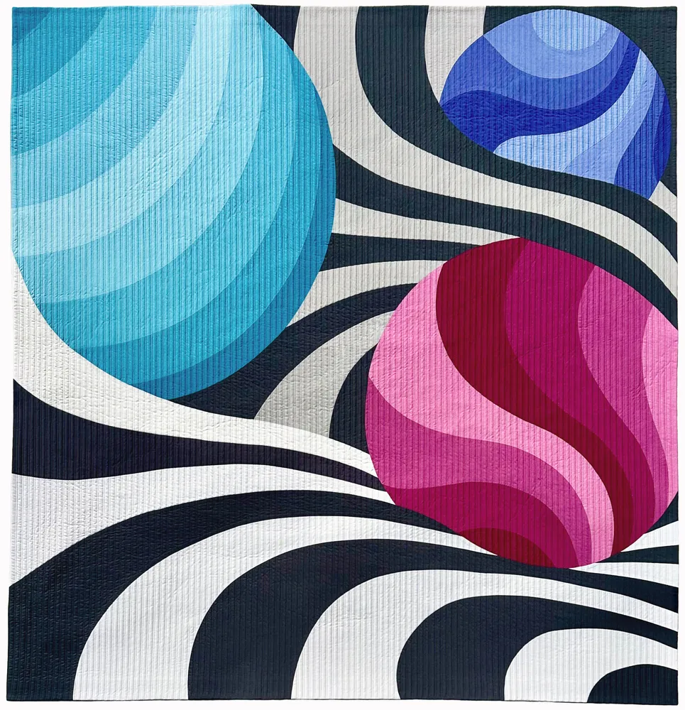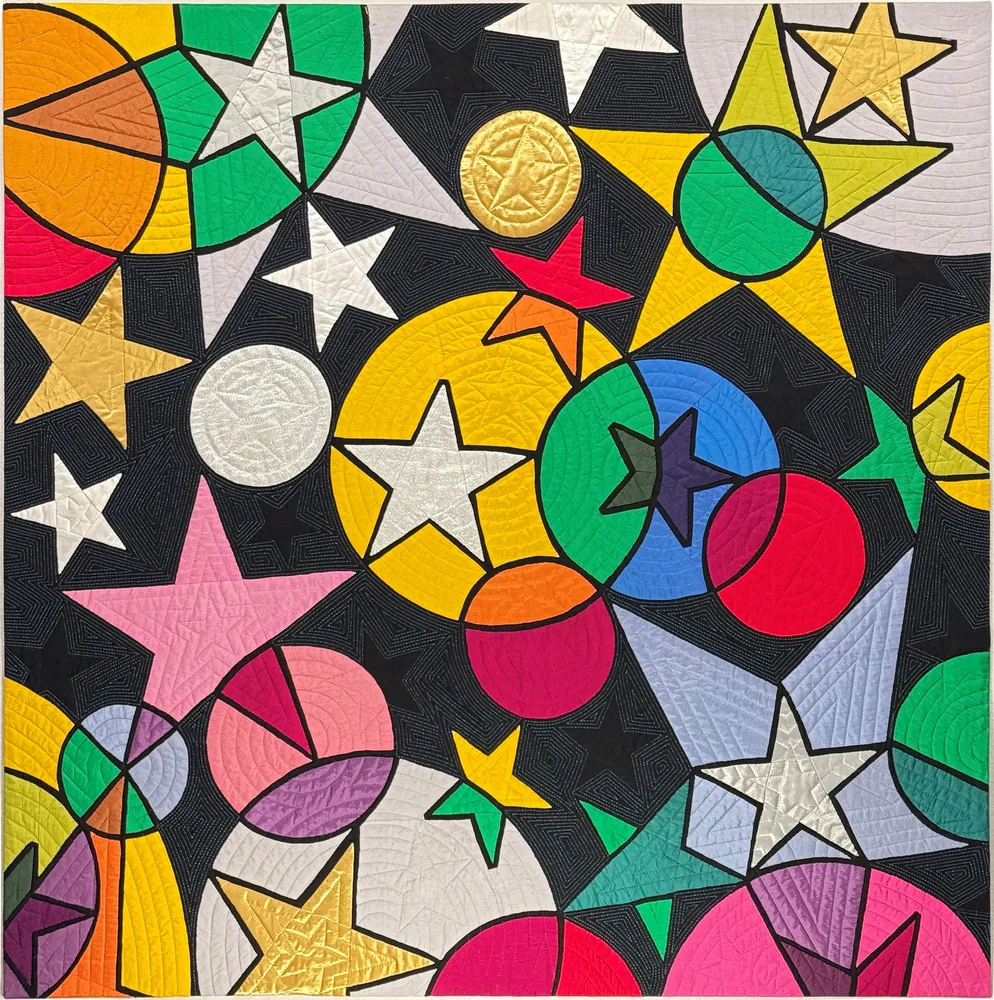 Die Modern Quilt Guild wurde gegründet, um den modernen Quilt zu fördern und weiterzuentwickeln. Heute ist sie die größte internationale Organisation, die sich diesem zeitgenössischen Textilbereich widmet. Mit Tausenden von Mitgliedern weltweit, organisiert in lokalen Gilden, unterstützt sie Innovation, Austausch und die Entwicklung einer modernen Quiltästhetik. Im Mittelpunkt ihrer Aktivitäten steht QuiltCon, die jährliche Ausstellung der Guild, die zu den wichtigsten Veranstaltungen des modernen Quiltens zählt. Jede Ausgabe präsentiert Werke aus der ganzen Welt, ausgewählt aufgrund ihrer Kreativität, technischen Qualität und visuellen Stärke. Die in dieser Ausstellung gezeigten Quilts stammen von QuiltCon 2026 in Raleigh, North Carolina, und spiegeln die Vielfalt und Dynamik der zeitgenössischen Quiltkunst wider. Mit innovativen Designs, mutigen Kompositionen und einem klaren grafischen Stil geben sie einen Einblick in die aktuellen Entwicklungen des modernen Quiltens.